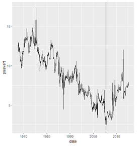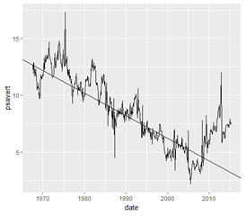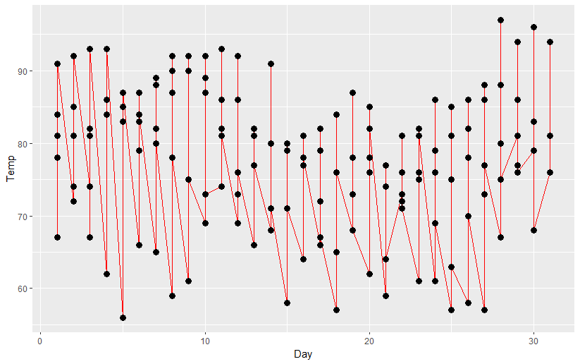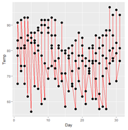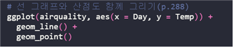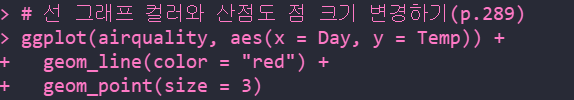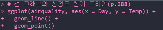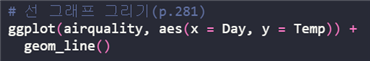 | ggplot(데이터 세트, aes(x=?, y=?)) + geom_line() |