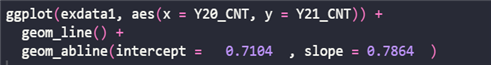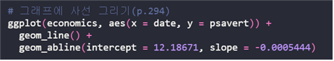 | geom_abline(intercept = 절편, slope = 기울기) |