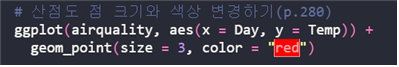 - 산점도 그리기 : geom_point() 함수