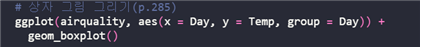 - 상자 그림 그리기 : geom_boxplot() 함수