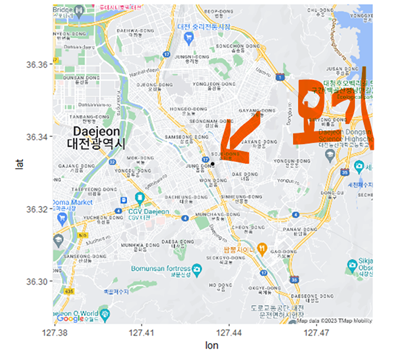 - 선택 미션 : 구글 API와 ggmap 패키지를 활용해서 원하는 장소의 지도를 불러온 후 결과 화면 인증하기