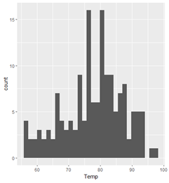 | ggplot(데이터 세트, aes()) + geom_histogram() |