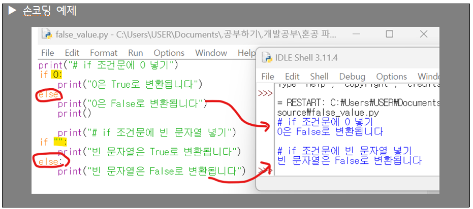 - False로 변환되는 값 : “뭔가 비어있는 것”