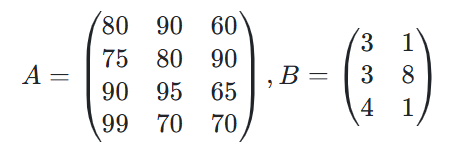 - 앞 행렬의 크기가 이고 뒷 행렬의 크기가 인 경우, 곱셈 결과 나오는 행렬의 크기는